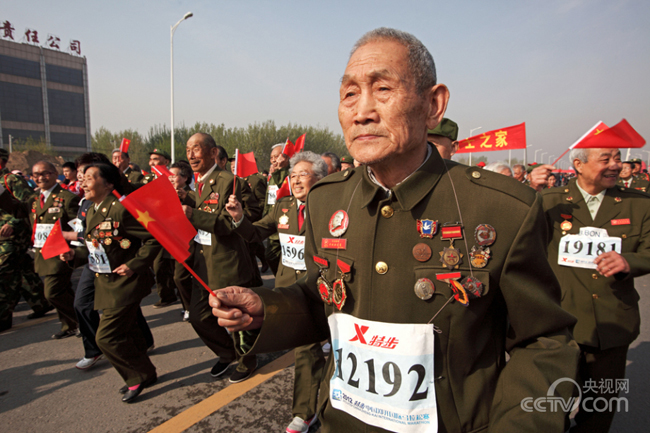 ??? 2012年4月8日,中國鄭州抗美援朝老戰(zhàn)士之家的60名全國各地老戰(zhàn)士代表踴躍參加第六屆中國鄭開馬拉松比賽。