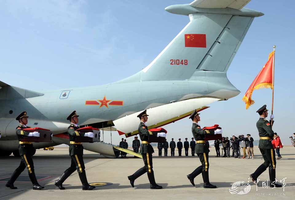 2015年3月20日,韓國仁川國際機場,禮兵們護送68具烈士