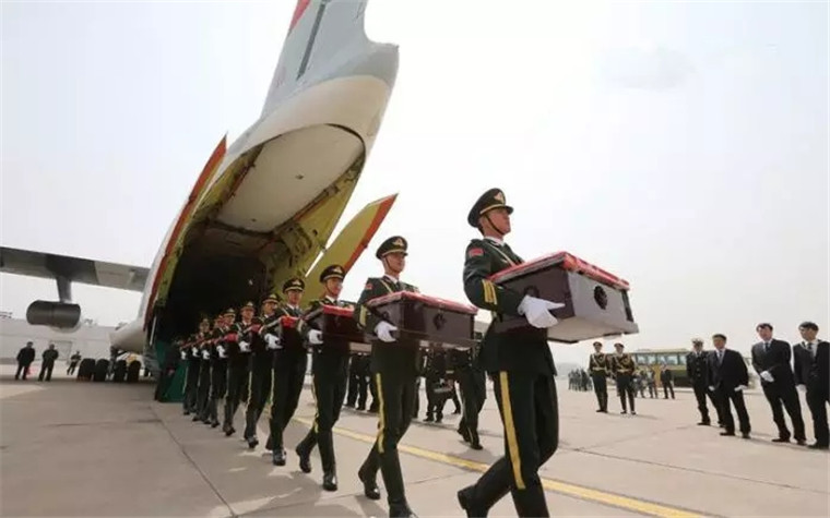2014年3月28日,首批437具中國人民志愿軍遺骸從韓國仁川機場踏上回家之路,運送烈士遺骸的專機進入中國領空后,空軍派出兩架殲-11B戰(zhàn)機迎接護航。上午11時30分,中國政府在沈陽桃仙機場舉行了隆重的迎接儀式,半個世紀埋骨他鄉(xiāng)的英魂終歸故鄉(xiāng)。
