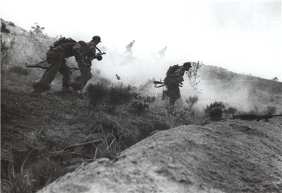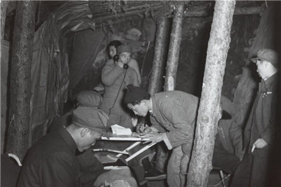 四月三十日至五月二十一日我志愿軍經(jīng)過整頓補(bǔ)充和調(diào)整部署后,乘東線敵人突擊、側(cè)翼暴露之機(jī),集中兩個(gè)兵團(tuán)共六個(gè)軍,在朝鮮人民軍的協(xié)同下,殲滅縣里地區(qū)之?dāng)骋蝗f八千人,迫敵退至縣里以南的下珍富里地區(qū)。這是志愿軍某部首長在指揮戰(zhàn)斗。