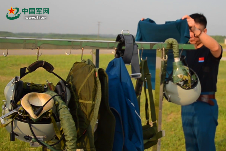飛行訓練結(jié)束后,飛行員在“晾”衣服。