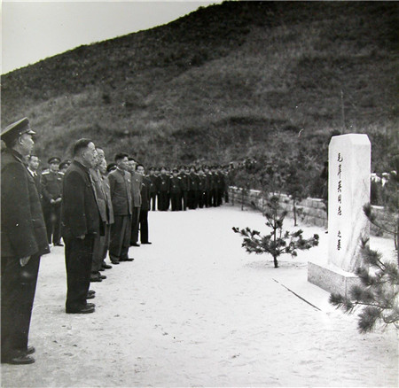 志愿軍總部官兵向毛岸英烈士墓告別。