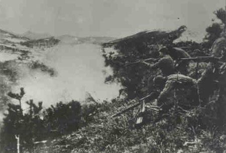 第二次戰(zhàn)役中,志愿軍某部機槍班在“聯(lián)合國軍”的飛機和坦克輪番進攻下,堅守高地。