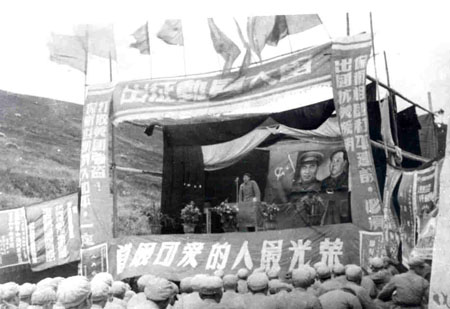 志愿軍某部召開出征動(dòng)員大會(huì)。