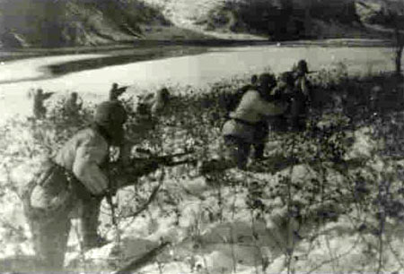 為了保證運輸暢通,上級決定在沸流江上修建一座低矮的爬行便橋,必須在10天內(nèi)完成。楊連第所在的2班承擔(dān)了最難挖的一個地段。此時楊連第已提升為副班長,只見他揮動著手中的大鎬,鎬頭落在凍土上,直冒火星,崩在臉上火辣辣地痛,雙手磨出了血泡,干到天亮?xí)r平均每人只挖了0.7立方米。為了提高速度,他和戰(zhàn)士們想出了辦法,直接在硬蓋底下掏松土,底下空了,然后把一層硬蓋揭開,這叫“掏心去皮法!”結(jié)果10天的任務(wù),只用7天就完成了。2班榮立集體一等功,楊連第光榮地加入了中國共產(chǎn)黨。
