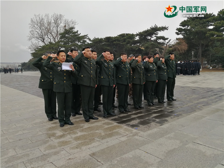 官兵在烈士紀(jì)念碑前宣誓。魯世聯(lián)攝