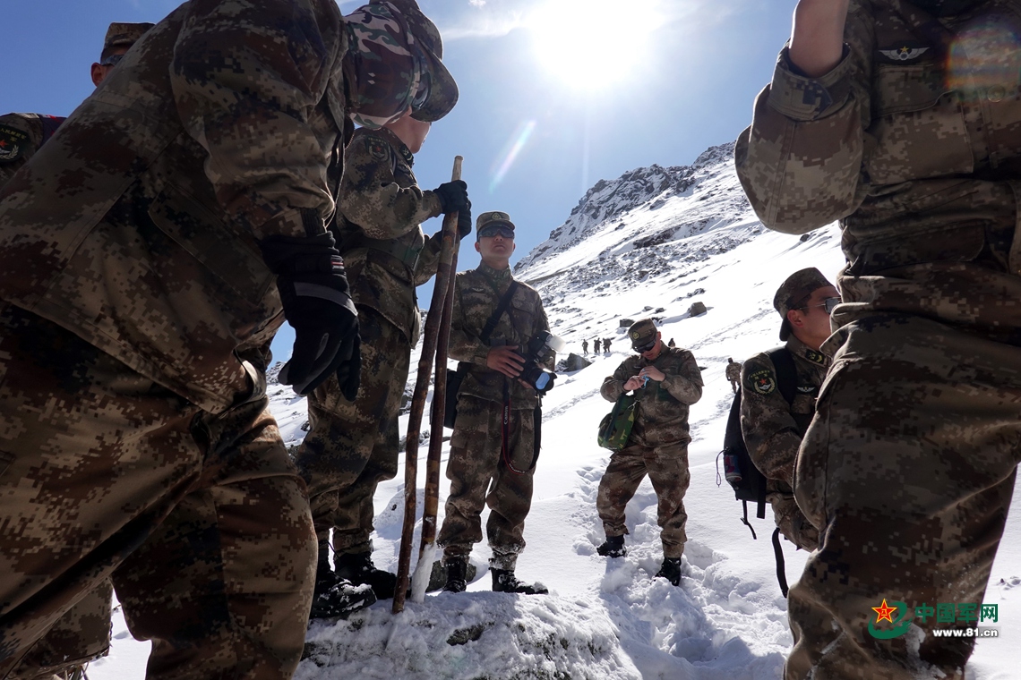一路上多是陡坡絕壁,好不容易碰上一塊平地,大家自然要在此喘口氣。中國(guó)軍網(wǎng)記者柳軍 攝