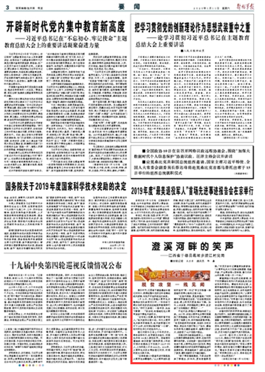 2019年,澄江村人均年收入達(dá)10073元,建檔立卡的貧困戶全部達(dá)到“兩不愁三保障”脫貧標(biāo)準(zhǔn),澄江村一躍成為脫貧攻堅樣板村?!皼]有火箭軍的幫扶,就沒有澄江村翻天覆地的變化?!备疔赅l(xiāng)黨委書記謝文斐動情地說,“軍民攜手同心合力,革命老區(qū)的明天一定會更美好!”