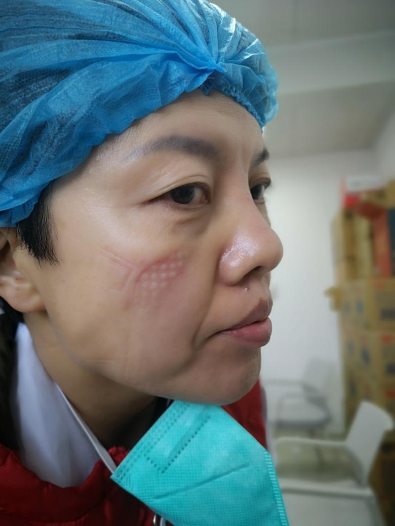 李曉靜不是一個人在戰(zhàn)斗,廣大退役軍人都是她的堅強后盾。由于長時間工作,護理人員臉上會留下防護設備深深的勒痕,不少人臉上出現(xiàn)了壓瘡和傷痕。李曉靜發(fā)出求助微信:我的團隊需要水膠體敷料。戰(zhàn)友們“聞風而動”,近300名退役軍人成立了愛心微信群,在不到7個小時內(nèi)為曉靜團隊捐了2000個醫(yī)用敷料,價值3.4萬元。如今,這批敷料已經(jīng)到了醫(yī)院附近的快遞提貨點。