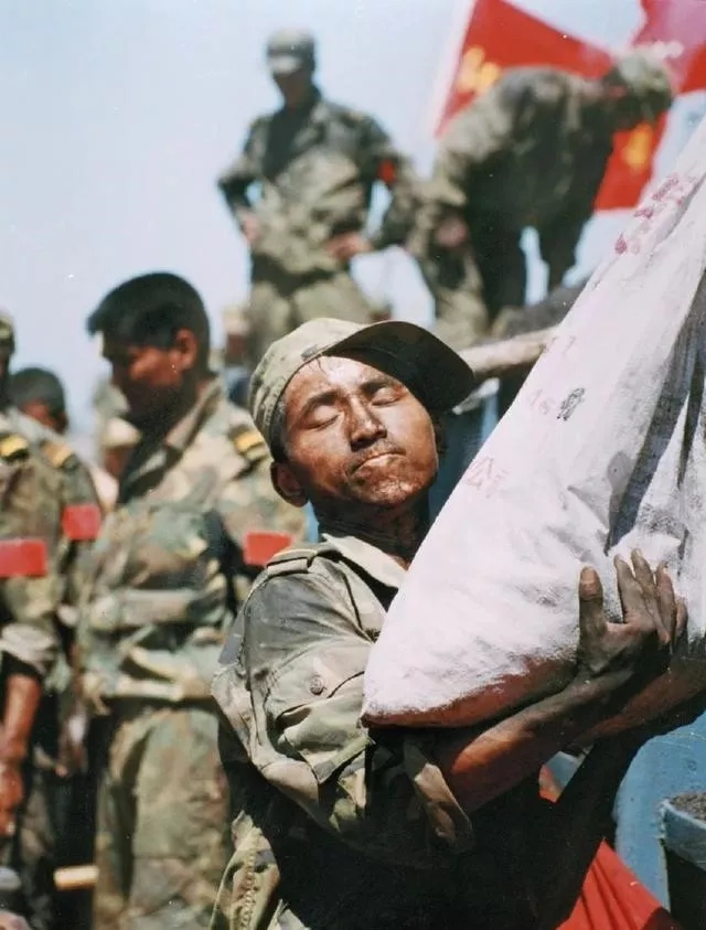 旗幟后是那一支支英勇無畏的解放軍隊伍