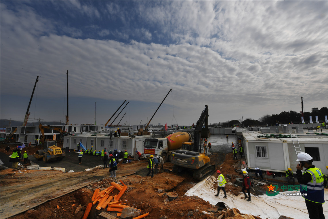 按照規(guī)劃,由中建三局承建的武漢火神山醫(yī)院于2月2日建成。據(jù)介紹,截至2月1日12時,火神山醫(yī)院項目場地基礎(chǔ)施工全部完成;集裝箱房、活動板房骨架安裝完成約95%;管線溝槽開挖、埋設(shè)及回填完成95%;水電暖通設(shè)備、供氧系統(tǒng)等安裝完成70%;污水處理站設(shè)備吊裝完成,管道安裝完成95%。室內(nèi)裝飾配套、室外醫(yī)療配套工程正全面展開。(文字來源:新華社)