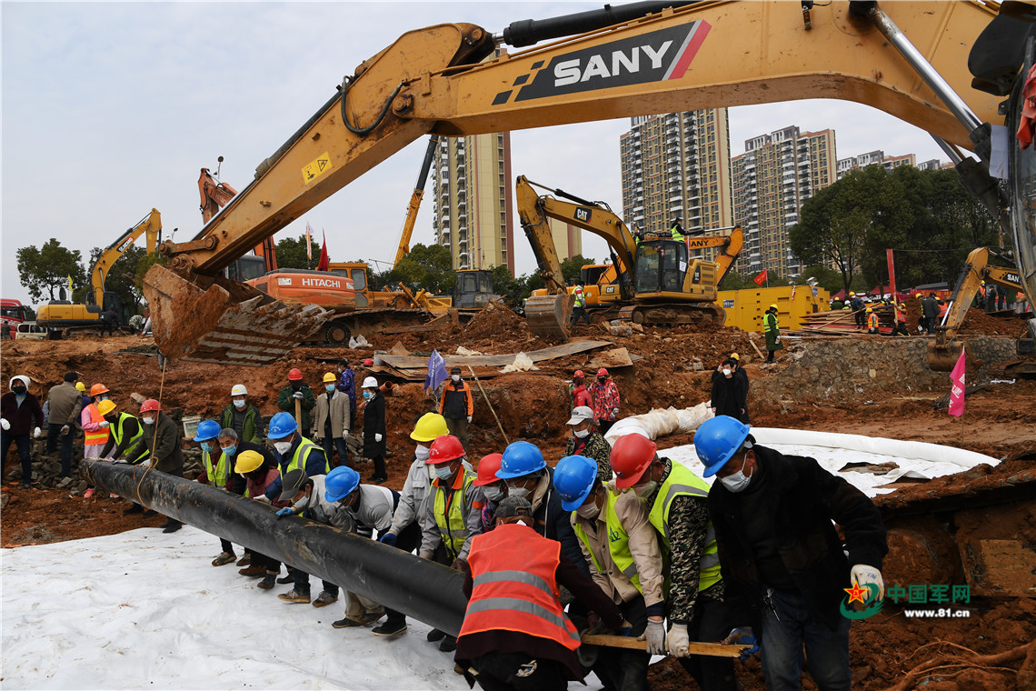 2月1日,武漢火神山醫(yī)院建設(shè)場景。中國軍網(wǎng)記者 王傳順 攝
