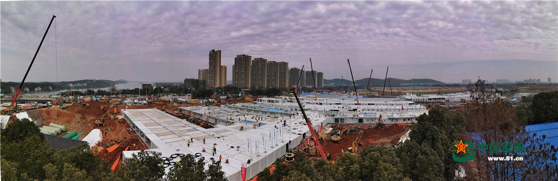 2月1日,武漢火神山醫(yī)院建設全景。中國軍網(wǎng)記者 王傳順 攝