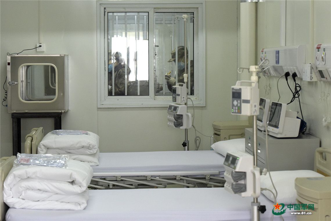 2月3日,軍隊支援湖北醫(yī)療隊隊員進入武漢火神山醫(yī)院病房完成各項準備工作。中國軍網(wǎng)記者 范顯海 攝