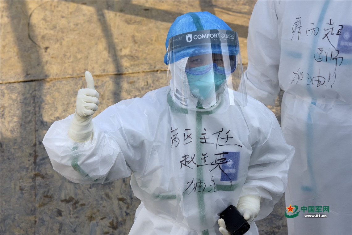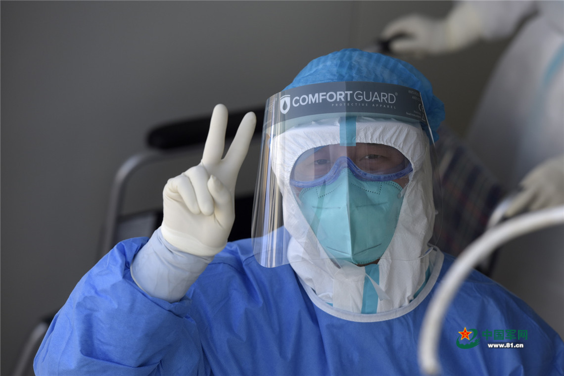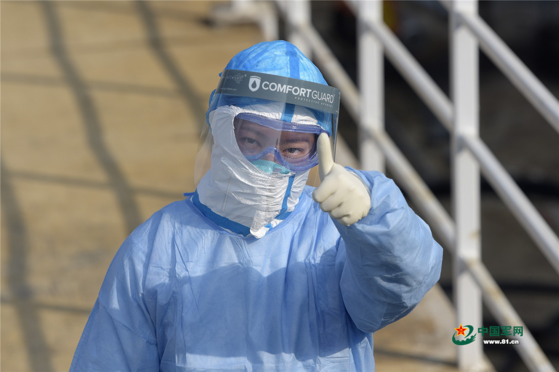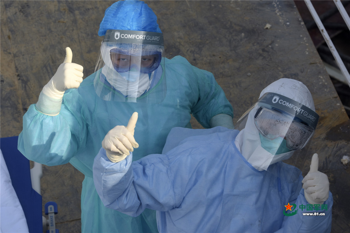 2月4日上午,武漢火神山醫(yī)院接收首批患者,醫(yī)療隊(duì)隊(duì)員斗志昂揚(yáng)。中國軍網(wǎng)記者 范顯海 攝
