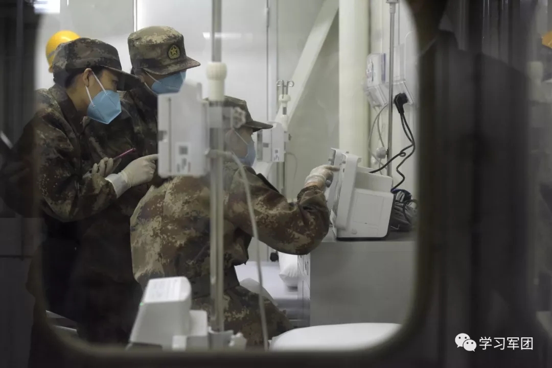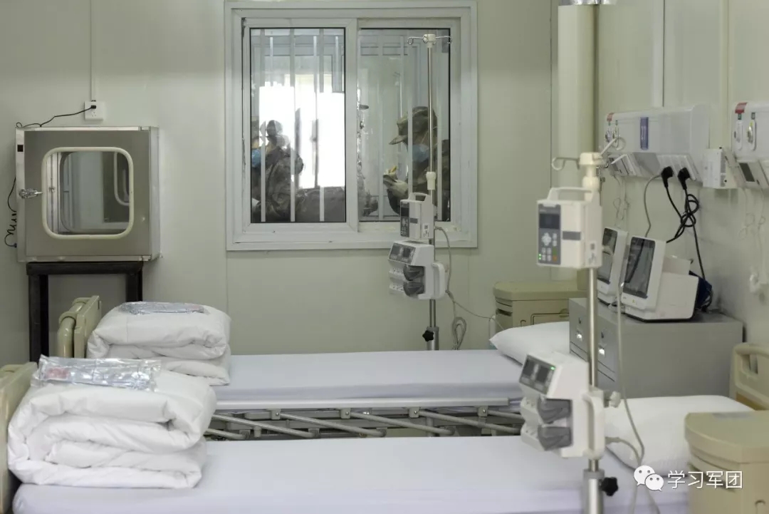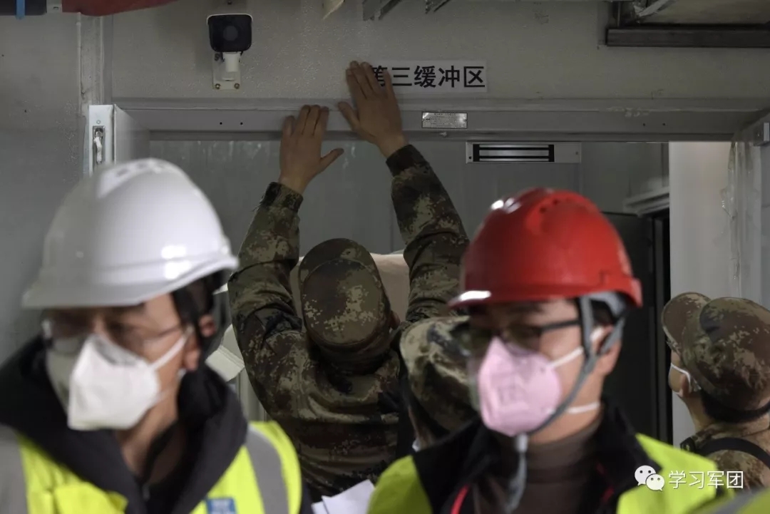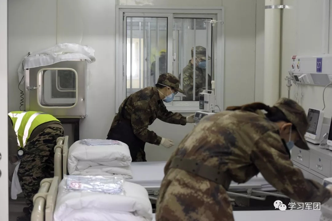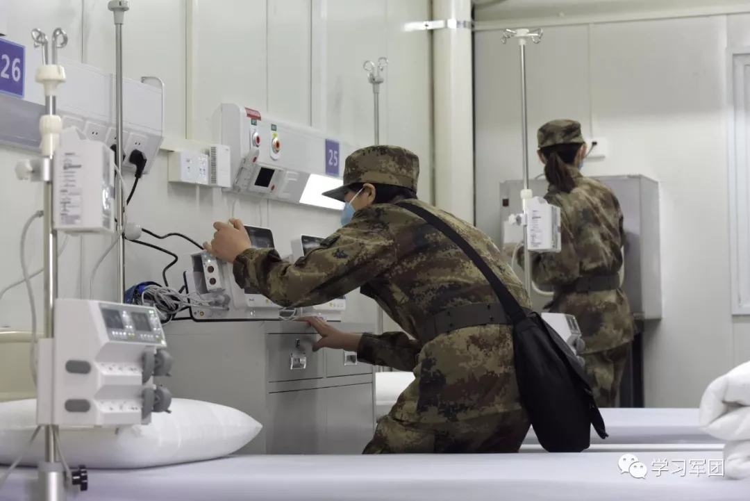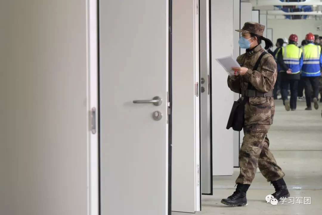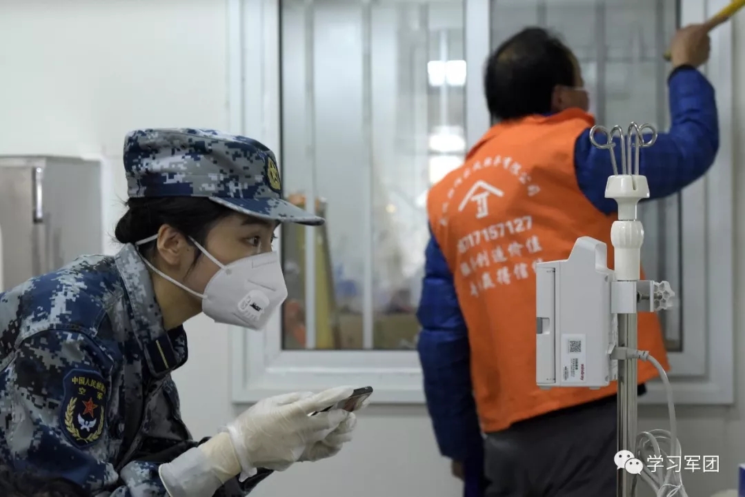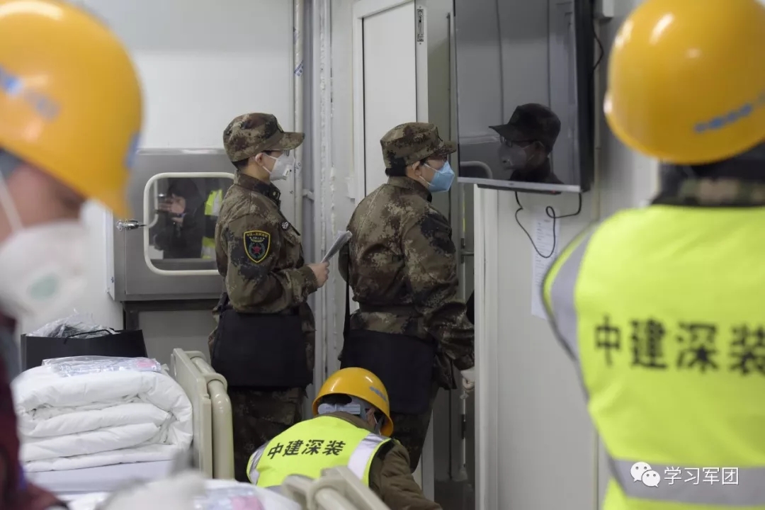 醫(yī)院內(nèi)一派忙碌景象,各種轉(zhuǎn)運(yùn)物資裝備的車輛有序行進(jìn),身著各色馬甲的施工人員正抓緊進(jìn)行設(shè)備安裝。各病房里,軍隊(duì)支援湖北醫(yī)療隊(duì)隊(duì)員與設(shè)備安裝人員一起,調(diào)試測(cè)試設(shè)備,聯(lián)通網(wǎng)絡(luò)。