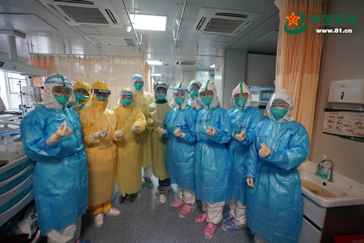 軍地護(hù)理人員“比心”鼓勵(lì)加油。中國軍網(wǎng)記者高輝攝