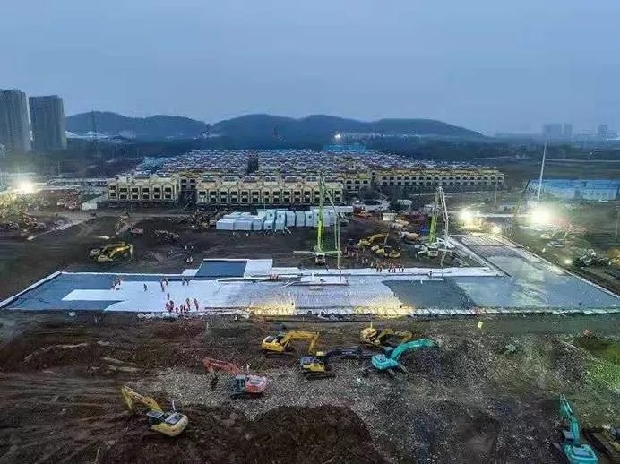 在全民圍觀的“云監(jiān)工”直播中,網(wǎng)友們給中國基建設(shè)備起了昵稱。三一重工的混凝土泵車被稱為“大紅”,挖掘機(jī)被稱為“小黃”,起重機(jī)則被叫作“送高宗”。自1月24日接到建設(shè)任務(wù)以來,三一重工的41臺(tái)起重機(jī)、8臺(tái)泵車、35臺(tái)攪拌車、22臺(tái)挖機(jī)共計(jì)106臺(tái)設(shè)備24小時(shí)晝夜不停,順利完成場(chǎng)地平整、砂石回填、土方澆筑等重要環(huán)節(jié)的施工。