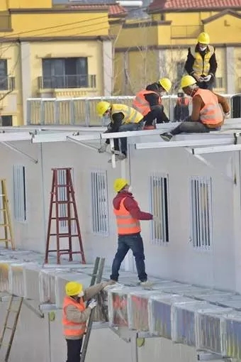 1月27日,首批集裝箱板房吊裝。