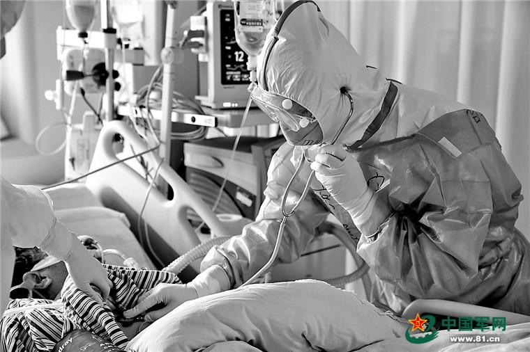 圖為1月27日,宋立強(qiáng)在武昌醫(yī)院為重癥患者診治。中國軍網(wǎng)記者 高輝 攝