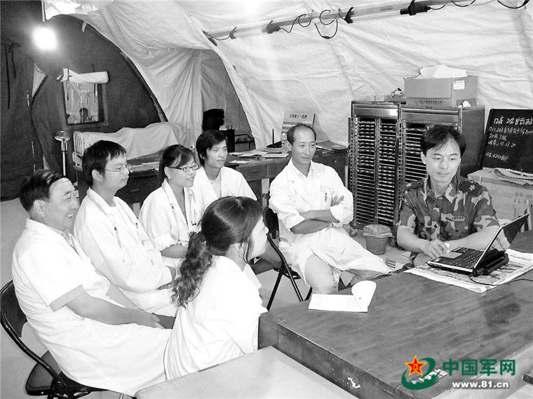 圖為宋立強(qiáng)(右一)參加2008年汶川抗震救災(zāi)。李翔 攝