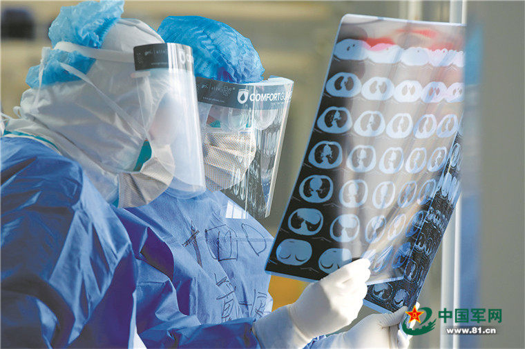 在轉診交接區(qū)域,救護車一停穩(wěn),軍隊支援湖北醫(yī)療隊醫(yī)護人員立即接過擔架,將患者扶上輪椅或輕輕放到擔架車上推進病區(qū)。醫(yī)護人員隨即逐個掃描患者身份憑條二維碼,將前期就診信息錄入電子病歷,并詳細了解患者病情,為患者檢查身體、監(jiān)測生命體征,科學調整救治方案,實現(xiàn)患者救治的順暢銜接。