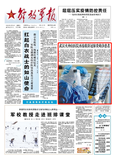 解放軍報武漢2月8日電 特約記者汪學潮、記者高立英報道:今天13時30分許,從漢口醫(yī)院、武漢市第六醫(yī)院、武漢市紅十字會醫(yī)院等武漢市定點收治醫(yī)院轉診的新一批確診患者,陸續(xù)抵達火神山醫(yī)院。軍隊支援湖北醫(yī)療隊醫(yī)護人員表示,堅決貫徹習主席重要指示精神和中央軍委部署要求,牢記人民軍隊宗旨,同時間賽跑、與病魔較量,全力以赴打贏疫情防控阻擊戰(zhàn)。
