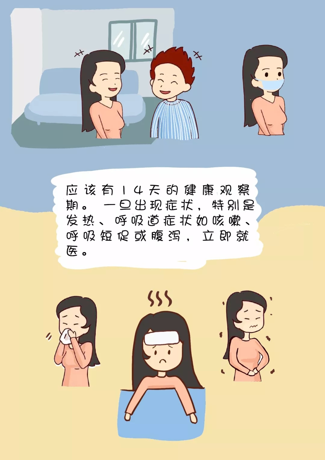 一旦出現(xiàn)癥狀,特別是發(fā)熱、呼吸道癥狀如咳嗽、呼吸短促或腹瀉,立即就醫(yī)。
