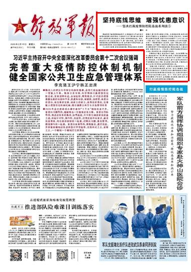 根據(jù)國家衛(wèi)健委最新數(shù)據(jù)顯示,全國除湖北以外地區(qū)每日新增的新冠肺炎確診病例,已連續(xù)多天呈下降態(tài)勢,經(jīng)過艱苦努力,疫情形勢出現(xiàn)積極變化,防控工作取得積極成效。請關(guān)注今日出版的《解放軍報》的詳細報道——