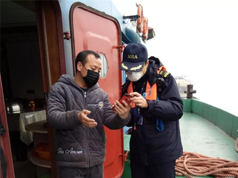 “‘海巡XXX’收到,在靠泊碼頭期間,請(qǐng)船上人員不得隨意上岸,在船期間帶好口罩,勤洗手、保持艙室通風(fēng),及時(shí)消毒。在港期間您有任何需要幫助的地方,請(qǐng)撥打天興洲執(zhí)法大隊(duì)24小時(shí)值班電話。”