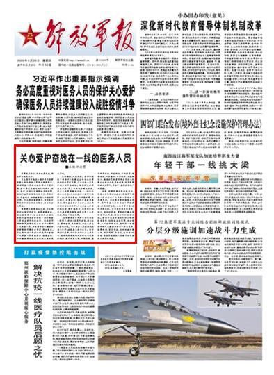 “全軍要在黨中央和中央軍委統(tǒng)一指揮下,牢記人民軍隊宗旨,聞令而動,勇挑重擔,敢打硬仗,積極支援地方疫情防控?!避婈犪t(yī)務人員視救死扶傷為天職,視服務人民為宗旨。面對肆虐的疫情,他們堅決聽從習主席號令,發(fā)揚越是艱險越向前的大無畏革命精神,敢于攻堅克難、沖鋒在前,善于科學施救、快速施治,不怕疲勞、連續(xù)作戰(zhàn),不負重托、不辱使命,用赤膽忠心、精湛技藝和責任擔當守護人民群眾生命安全和身體健康,成為疫情防控的先鋒隊、突擊隊,贏得社會的廣泛贊譽。