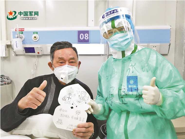當天晚飯,護士長張瑤帶隊,端著蛋糕,捧著賀卡,唱著生日歌,走進病房。廖爺爺激動地流下了眼淚:“這是我八十年來最難忘的生日之一。”