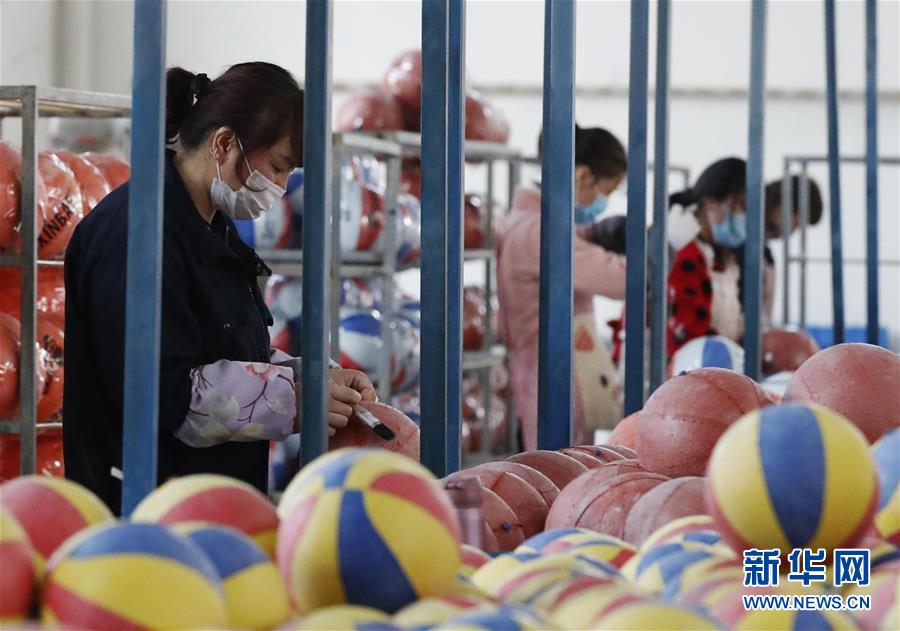 3月11日,在江蘇泗洪一制球企業(yè)生產(chǎn)車間,工人在生產(chǎn)線上忙碌。 近日,江蘇省宿遷市泗洪縣在做好疫情防控同時,組織農(nóng)民在各企業(yè)有序復工。近年來,泗洪縣有7.6萬名農(nóng)民在家門口就業(yè),做好農(nóng)業(yè)生產(chǎn)的同時,拓寬了增收渠道。 新華社發(fā)(許昌亮 攝)