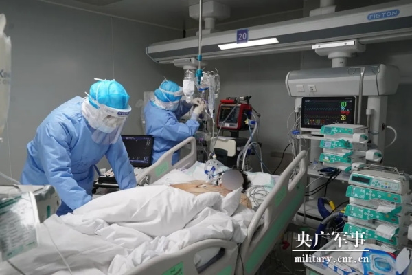 火神山ICU中,醫(yī)護(hù)人員對(duì)危重癥患者進(jìn)行精心救治