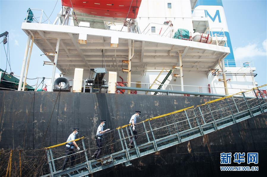 3月24日,??谶厵z總站馬村邊檢站民警對(duì)在港船舶進(jìn)行巡查。 近日,海南省多個(gè)重點(diǎn)項(xiàng)目相繼復(fù)工復(fù)產(chǎn),??谶厵z總站馬村邊檢站采用24小時(shí)三級(jí)值班服務(wù)制度,利用電子監(jiān)控、無(wú)人機(jī)巡查、人工巡查等方式靠前服務(wù),對(duì)入境馬村口岸人員提前進(jìn)行大數(shù)據(jù)排查,并督促在港船舶做好消毒、通風(fēng)等防疫措施,做到疫情防控和邊檢服務(wù)兩不誤。 新華社發(fā)(張麗蕓攝)