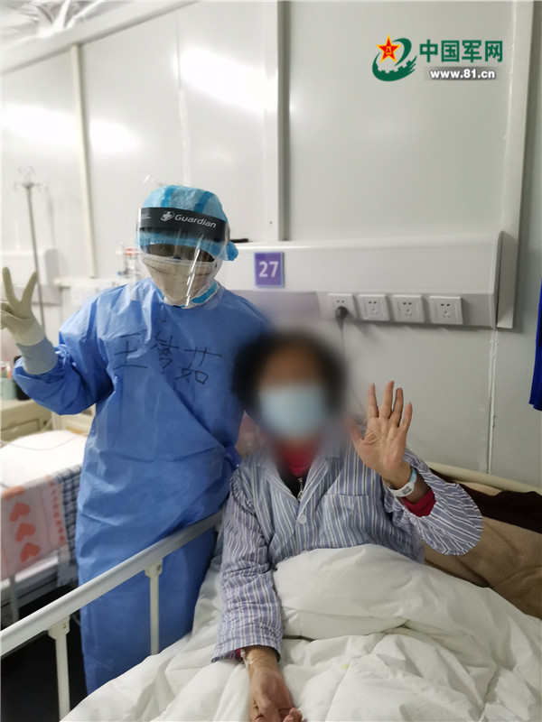 王夢茹與即將康復(fù)出院的患者合影(王亞杰攝)