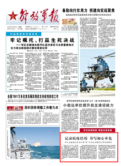 軍隊(duì)支援湖北醫(yī)療隊(duì)是抗疫一線的重要力量,4000多名醫(yī)務(wù)人員牢記宗旨、勇挑重?fù)?dān)、敢打硬仗,發(fā)揮了先鋒隊(duì)突擊隊(duì)作用。抗疫戰(zhàn)場上發(fā)生了許多感人故事,不少醫(yī)務(wù)人員把所見所聞所感寫成日記,真情記錄身邊的好人好事,不少內(nèi)容感人至深、催人奮進(jìn)。為此,解放軍新聞傳播中心與火神山醫(yī)院、中部戰(zhàn)區(qū)總醫(yī)院、武漢市泰康同濟(jì)醫(yī)院、湖北省婦幼保健院光谷院區(qū)的醫(yī)療隊(duì)共同發(fā)起戰(zhàn)“疫”日記征文活動(dòng)。各級(jí)黨組織把征文活動(dòng)作為抗疫思想政治工作的有力抓手,鼓勵(lì)隊(duì)員們記錄抗擊疫情、拯救生命的戰(zhàn)斗故事,傳遞正能量,書寫初心本色。