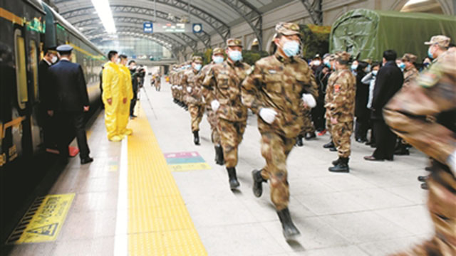 解放軍支援湖北醫(yī)療隊(duì)進(jìn)駐武漢地方醫(yī)院后,全力以赴投入疫情防控和救治工作。