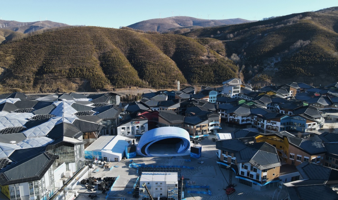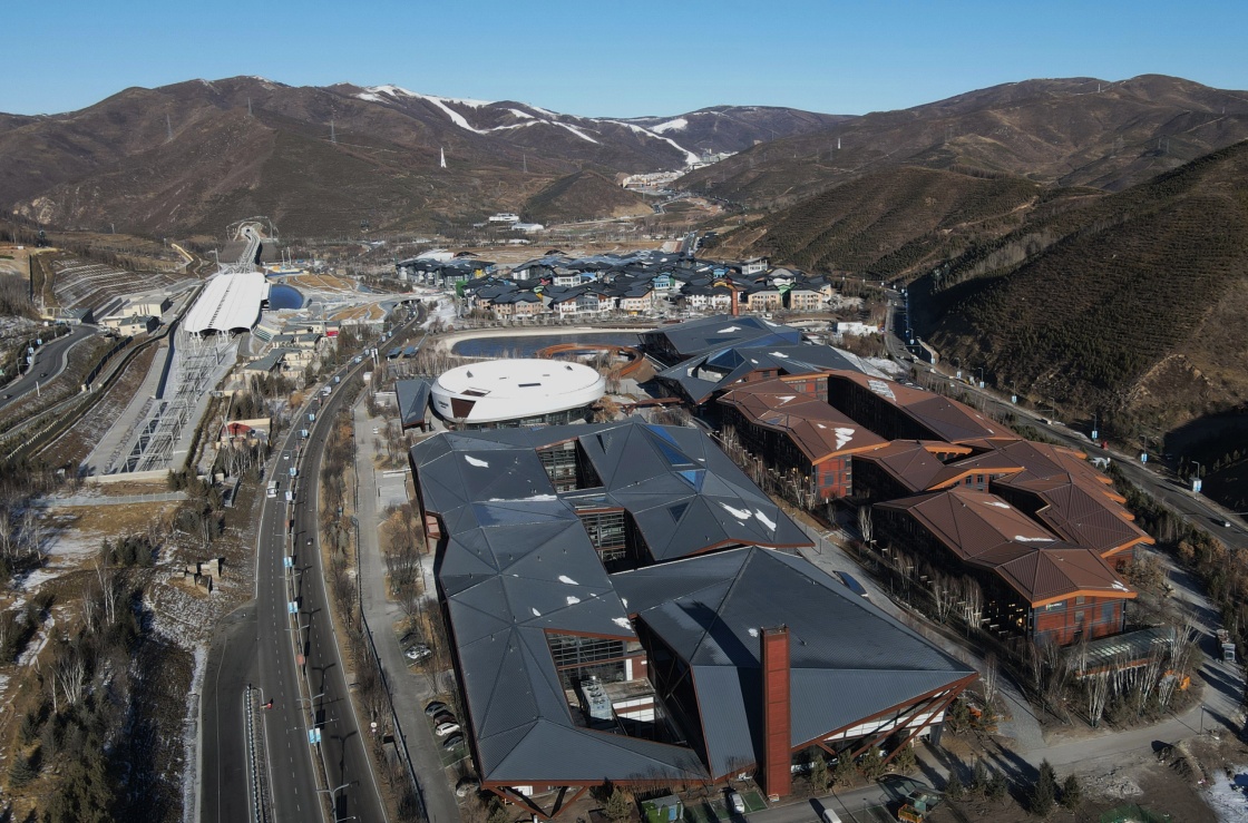在崇禮冬奧核心區(qū)的古楊樹場館群中,一柄“如意”雄踞雪原;在這個國家跳臺滑雪中心面前的兩側山谷,國家越野滑雪中心和國家冬季兩項中心坐落其間;“冰玉環(huán)”將三者綴珠成串。不遠處,云頂場館群隔山相望。
