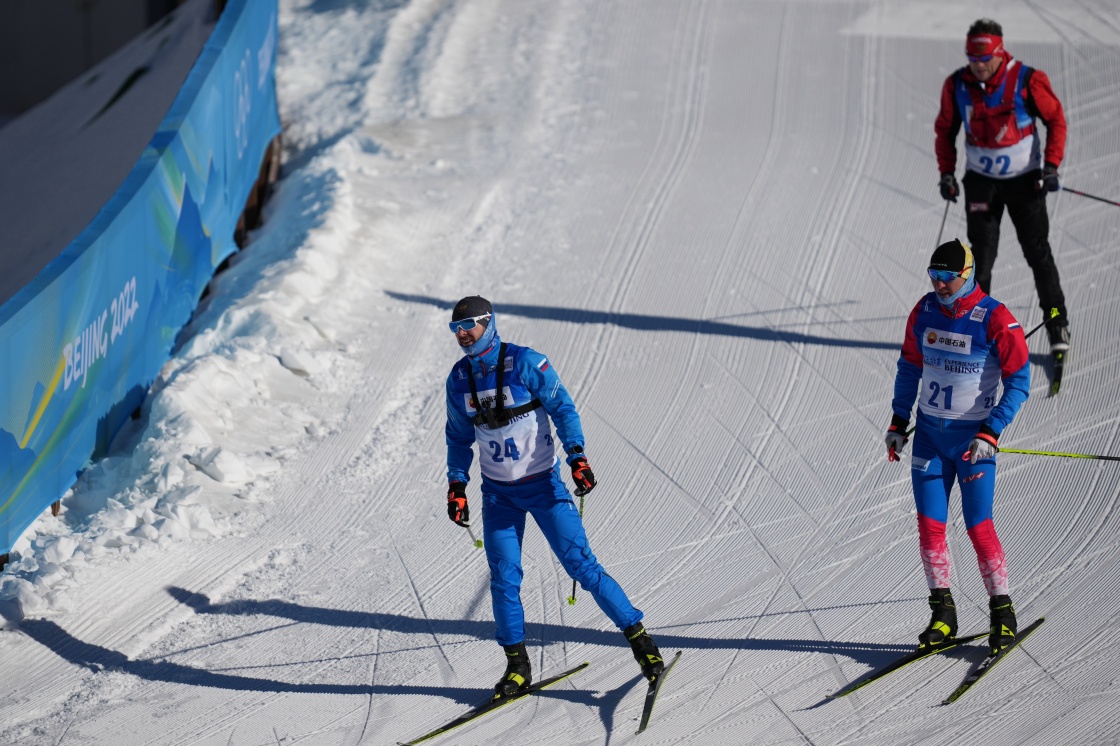 2021年12月28日,2021/2022冬季兩項(xiàng)國際訓(xùn)練周的參與人員在國家冬季兩項(xiàng)中心賽道上滑行。新華社記者 牟宇 攝