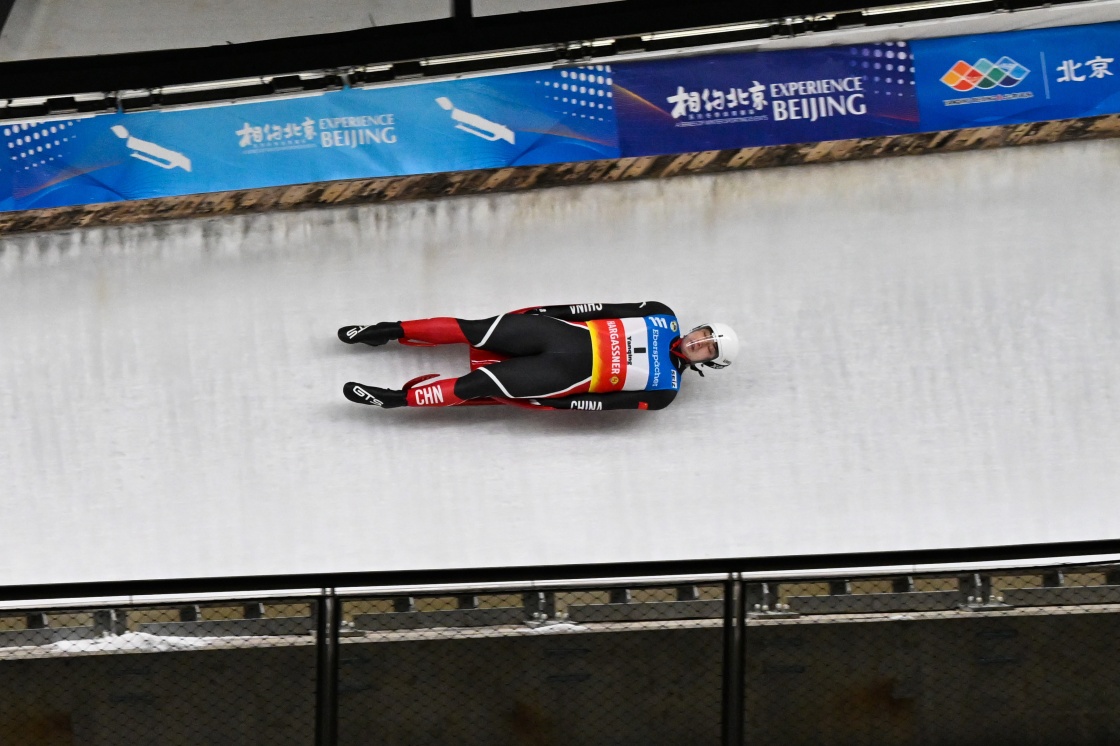 2021年11月20日,中國選手范鐸耀在“相約北京”2021/2022國際雪橇聯(lián)合會(huì)雪橇世界杯男子單人雪橇比賽中。新華社記者 陳益宸 攝