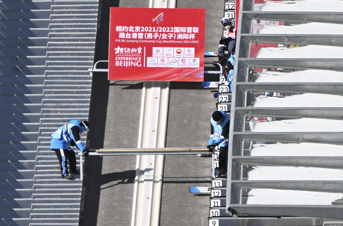 在疫情防控方面,國家跳臺滑雪中心場館運行團隊以場館運行設(shè)計和防疫分區(qū)設(shè)置為抓手,以重點客戶群服務(wù)保障為關(guān)鍵,堅決貫徹“分區(qū)不重疊、流線不交叉、界面需嚴管、人員不跨區(qū)”的工作要求。場館準備了充足的醫(yī)用防護口罩、外科口罩、免洗手消毒液、防護服等24種防疫物資,滿足人員日常防護和應(yīng)急處置需要。場館運行團隊還在運動員綜合區(qū)、領(lǐng)隊會議室等8個點位設(shè)置了防護物品擺放臺,為運動員等外籍人員提供備用口罩和手消毒液。同時,結(jié)合場館運行實際,場館運行團隊制定了疫情應(yīng)急處置預(yù)案,設(shè)定可能出現(xiàn)的不同場景,反復(fù)進行推演,并在每一個業(yè)務(wù)領(lǐng)域都確定了一名應(yīng)急聯(lián)絡(luò)員,保證在必要時能進行快速、科學(xué)、規(guī)范的處置。