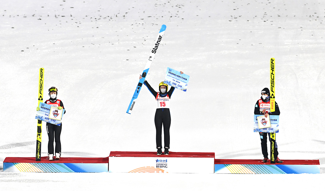 12月5日,“相約北京”2021/2022國(guó)際雪聯(lián)跳臺(tái)滑雪洲際杯第二比賽日中,俄羅斯選手托洛普契諾娃拿下女子個(gè)人標(biāo)準(zhǔn)臺(tái)冠軍,中國(guó)運(yùn)動(dòng)員董冰獲得亞軍,索契冬奧會(huì)該項(xiàng)目冠軍、德國(guó)名將沃格特位列第三。至此,本站洲際杯正式落幕。(圖文/崔峻)