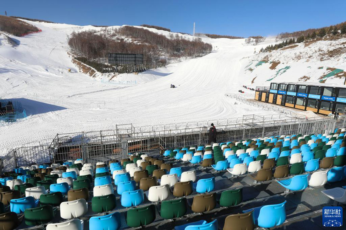 近日,北京冬奧會張家口賽區(qū)云頂滑雪公園看臺座椅已安裝完畢,工作人員忙著對賽道進行二次塑型等工作,為即將到來的測試賽做準備。圖為11月16日,工作人員在云頂滑雪公園看臺上巡檢。(武殿森 攝)