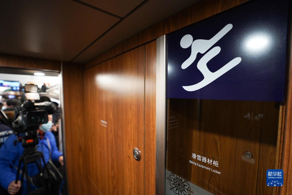 這是1月6日拍攝的G9981次北京冬奧列車內(nèi)設(shè)置的滑雪器材柜。