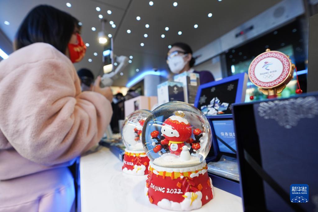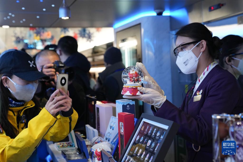 這是1月6日在G9981次北京冬奧列車內(nèi)拍攝的北京冬奧會特許商品商店。