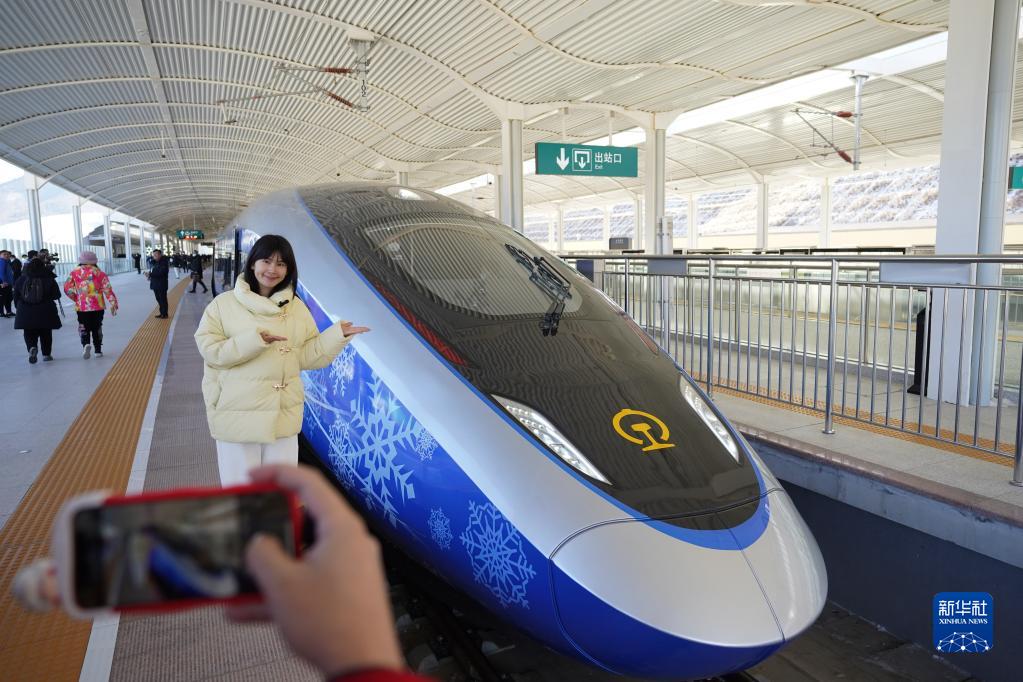 這是1月6日在京張高鐵太子城站拍攝的G9981次清河站開往崇禮站的北京冬奧列車。