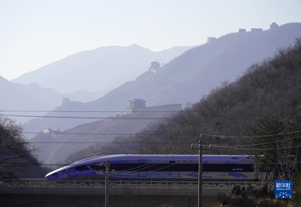 1月6日,G9981次北京冬奧列車駛過居庸關(guān)長城。