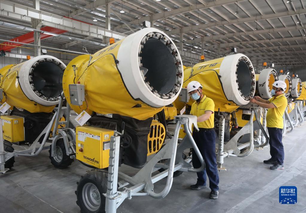這是張家口高新區(qū)冰雪運(yùn)動裝備產(chǎn)業(yè)園內(nèi)一家冰雪設(shè)備企業(yè)的工人在車間查驗造雪機(jī)質(zhì)量(2021年6月23日攝)。新華社記者 楊世堯 攝