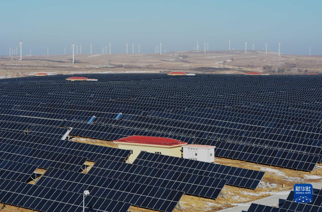 這是張家口壩上地區(qū)的國家風(fēng)光儲輸示范電站內(nèi)的風(fēng)光互補(bǔ)發(fā)電場(2017年12月27日攝)。新華社記者 楊世堯 攝